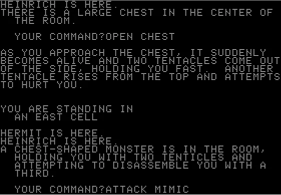Несмотря на визуальную простоту, The Wizard's Castle была весьма увлекательной и содержала много интересных особенностей. Например, персонаж мог ослепнуть, потерять память или намертво приклеиться руками к книге, — от всего этого позволяли избавиться особые артефакты. Удивительно, что всё это поместилось в пять тысяч строк кода. У игры, кстати, есть и неофициальная версия для Windows с улучшенной графикой.