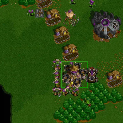 Классический игровой момент - Рыцарь смерти кастует заклинание Смерть и разложение за деревьями при поддержке катапульт. Огры дерутся с палладинами, в то время как маги кастуют заклинание Вьюга