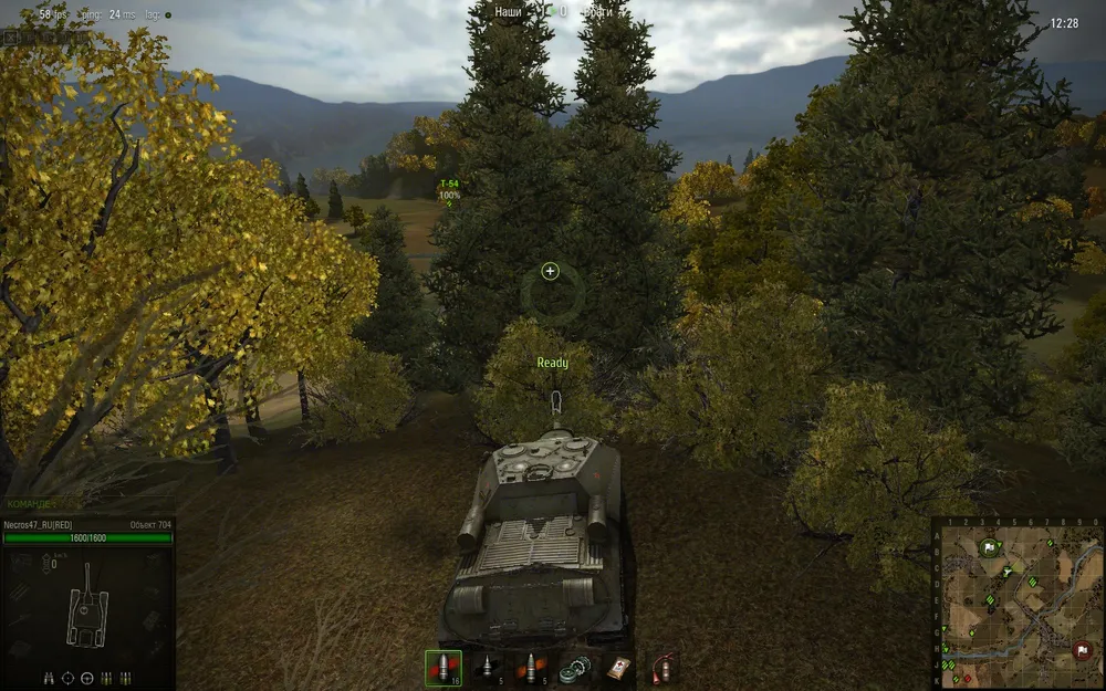 Правильная дистанция определяется очень просто – он перестает быть для нас прозрачным. В этом случае демаскировка при выстреле отсутствует, но сложнее попадать в быстро двигающиеся цели, т.к. стреляем по контуру танка противника сквозь куст.