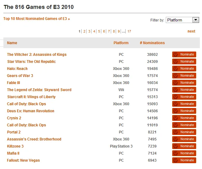 Для начала, скажу, что на протяжении всей E3 и еще пару дней после (на момент написания поста осталось 4 дня и 9 часов) проводится голосование лучшей игры на разных платформах. Всего участвует 816 игр