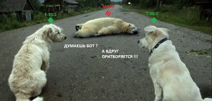 Конец боя, вражеский фуловый ИС-7 нашёл нашего ваншотного Т-54. Последний стреляет — «Не пробил», — и начинает яростно вилять задницей вправо-влево перед ИС-ом, надеясь на чудо. ИС-7 только башней водит. Т-54 опять стреляет — «Рикошет», — и продолжает вилять. ИС-7 выдаёт в чат: «Продолжай! Я готов ещё подождать, из-за твоего танца у моей жены уже живот от смеха болит!».