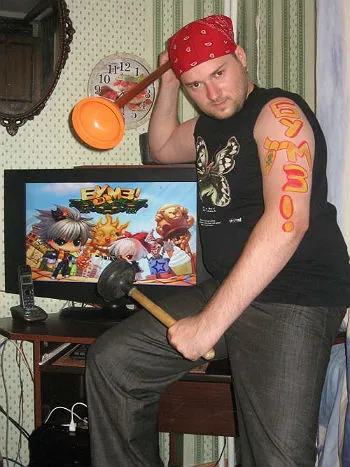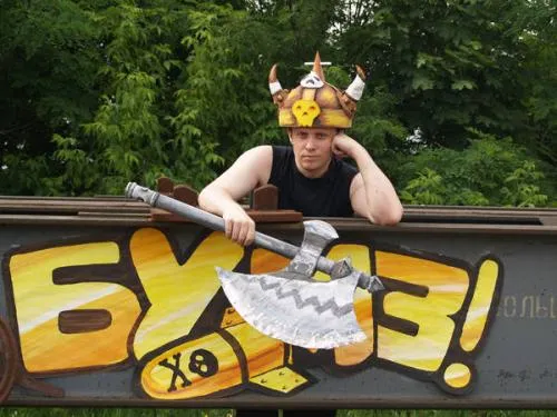 vlakodlak227 предстал перед зрителями в образе сурового безбородого викинга. Надо заметить, декораторские способности у молодого человека тоже на высоте: он смог довольно похоже нарисовать логотип «Бумз!» и устроил фотосессию на фоне товарного поезда.