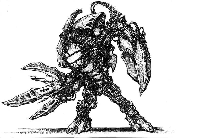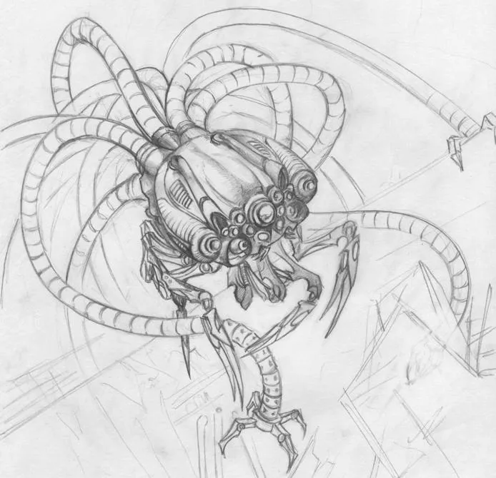Похож на обычного астрального демона разведчика, но имеет металлическую поблескивающую броню, больше в 3 раза, окружен облачком зеленого пара, оборванные провода у брюха. на морде множество глаз и несколько жвал. Имеет в целом потрепанный вид. Похож на охотника из матрицы
