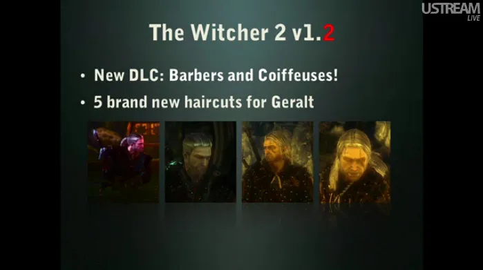 Чуть позднее в июне появится новое небольшое дополнение, которое позволит игрокам поменять причёску Геральта. Сделать это можно будет у специального NPC. На выбор будет предложено 6 видов причёсок, включая стандартную мальвинку из второй части, несколько вариантов хвостика и классические распущенные волосы как в Ведьмаке 1.