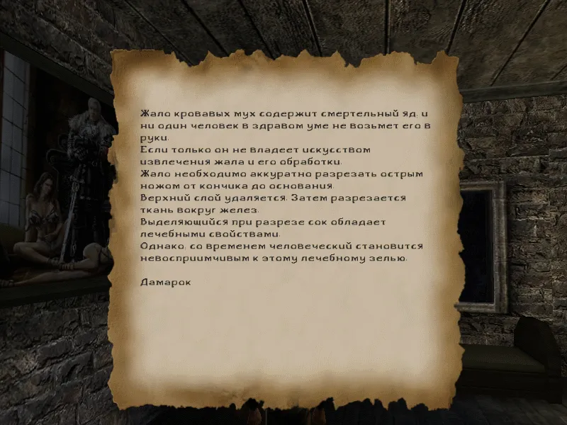 В замке паладинов в Рудниковой Долине можно найти "инструкцию" по извлечению жала кровавых мух. Кто её написал?
