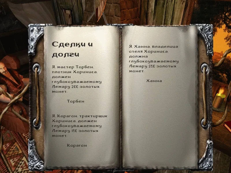 150 золотых. Не бог весть какая сумма, а для хозяина трактира - и вовсе сущие гроши [учитывая расценки на выпивку в его заведении]. Информацию о долге мы узнаём из долговой книги Лемара.