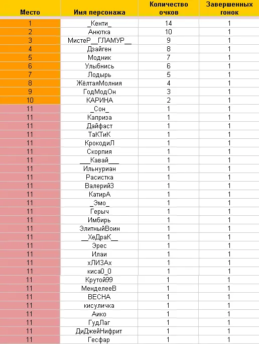 Поздравляем победителей первого тура! Второй тур начнется в ближайшую субботу, [B]29 мая, в 21:00[/B] по московскому времени. [B]Приглашаем всех желающих принять в нем участие[/B], событие обещает быть ярким и насыщенным. Регистрируйтесь на игры Радуги, даже если вы пропустили первый тур, ведь выйти в лидеры вполне можно и после нескольких удачных гонок, поэтому все в ваших руках!
