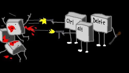 У обычных клавиатурных клавиш есть своя жизнь — некоторые обладают яркой индивидуальностью (например, Caps Lock у многих ассоциируется с глупыми девушками, поэтому легко представить эту клавишу в виде водевильной блондинки), некоторые сильны только в сочетании с другими. При некотором напряжении фантазии все это можно даже зарисовать.