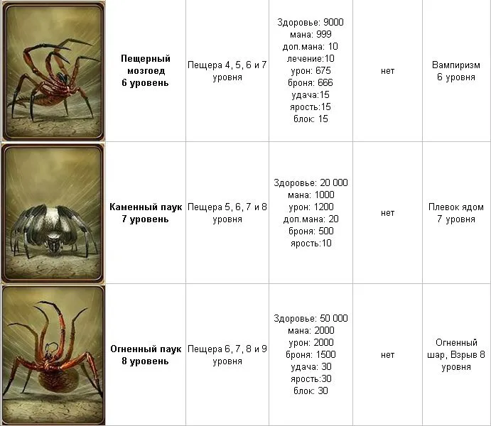 Пауки 9 и 10 уровней довольно серьезные противники. У них высокий показатель здоровья и большой урон. И если здоровье вашего персонажа менее 9000, то я не рекомендовала бы вам сражаться с ними - один яростный удар паука и все, кирдык бой закончен, причем не в вашу пользу.