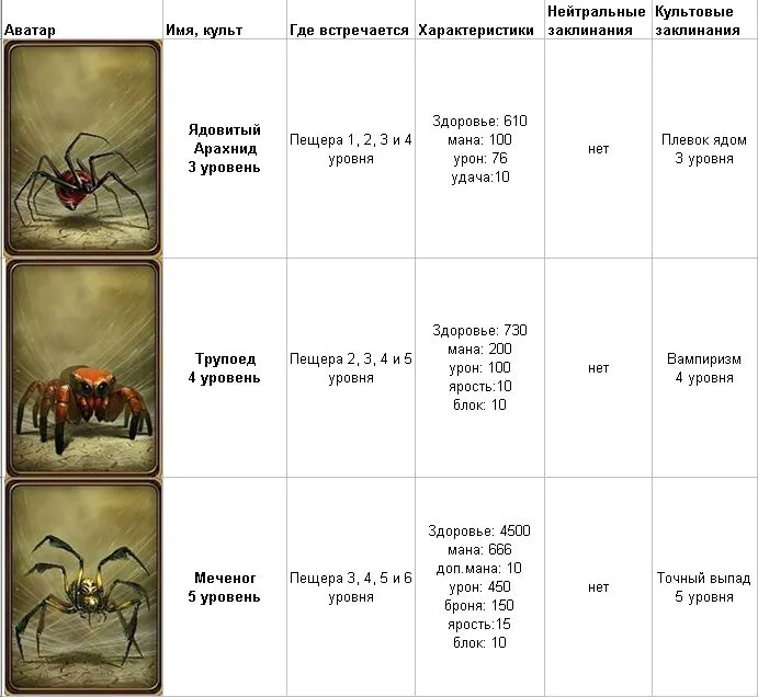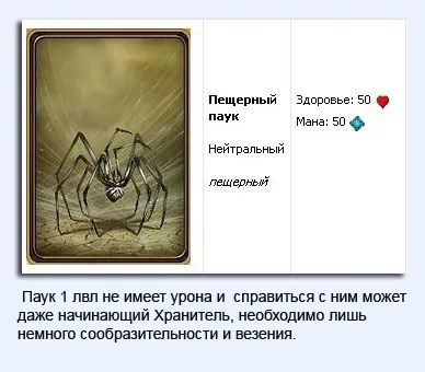 Проследуем дальше вглубь нашей пещеры. Следующие паучки уже не будут столь безобидны. Дело в том, что эти твари мутировали и с недавнего времени стали применять культовую магию. Поэтому при встрече с ними надо быть особенно внимательными.