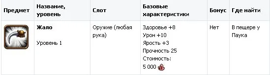 С пещерного паука мы можем снять его жало. Не убойной силы, но довольно часто оно является первым оружием Хранителя.