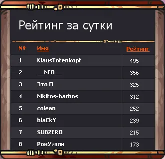 Вместо топ-8 игроков, которые получили за сутки больше всего рейтинга в бою: