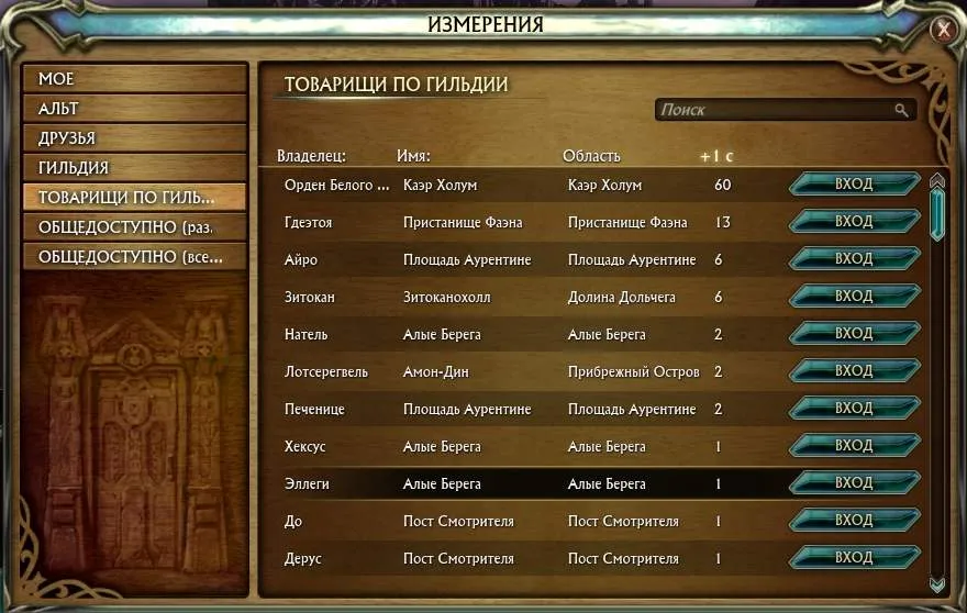 Далее вы увидите меню Измерений, которое предложит вам переместиться в свое измерение, осмотреть другие или зайти в измерение вашей гильдии.