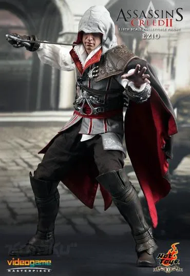 Перед Вами поразительная по своей схожести с оригиналом, миниатюрная копия Эцио из AC2, сделанная Гонконгской компанией Hot toys. Она 30 см в высоту, и поставляется со съемными кистями рук, оружием и даже хвостиком главного героя. К тому же фигурка очень точно детализирована.
