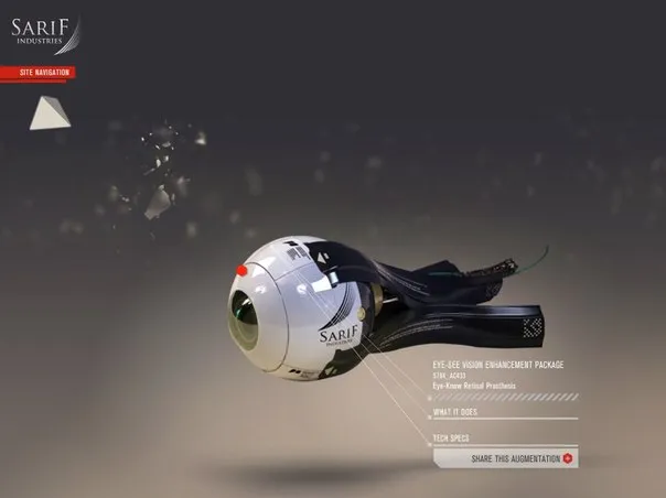 На самом же деле, Sarif Industries - вымышленная корпорация,использованная в игре Deus Ex: Human Revolution. Ее специальностью считалась разработка человеческих имплантов.В статье также были обнародованы,якобы, снимки того самого глаза. А это оказалось всего лишь артом из игры.