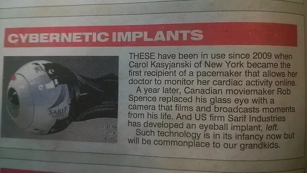 Известная британская газета The Sun (более 2.5 миллионов экземпляров тиража) написала статью о современных кибернетических технологиях,в которой упомянула о заменителе глаза и компании Sarif Industries.