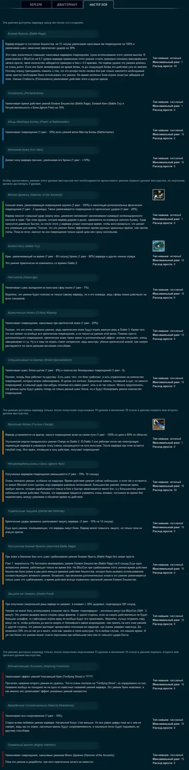 Ветка Мастер Боя включает в себя разнообразные пассивки и усиления самого варвара, специализированные удары(усиливающие варвара) и усиление партии.