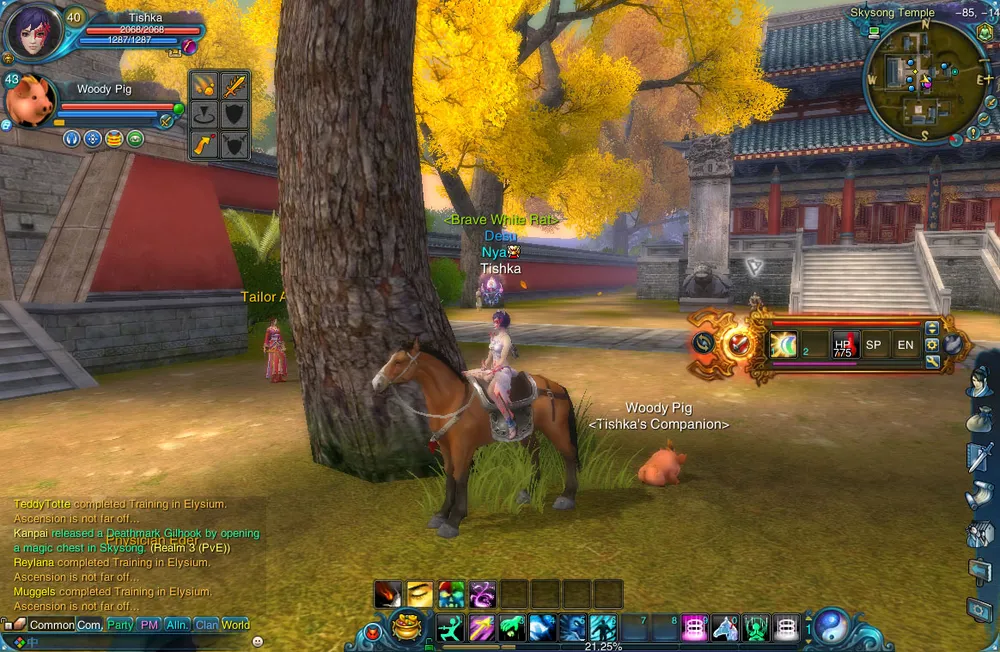 Тут я, конечно же, могу судить лишь с точки зрения новичка - но играть пока что действительно интересно. И приятно. Начинающим при старте игры выдают неплохой сундучок, из которого каждые 5 уровней падают некие сюрпризы. Конечно, в PW тоже есть такой, но - если честно - выдает он откровенную ерунду. Синее оружие, баночки на пополнение хп, низкоуровневые камни... Тут же из сундука падают: пет, смайлики, корм для пета, лучшее оружие на уровень, маунт (!!!). Маунт, кстати - обычная гнедая лошадь, но прорисована она гораздо лучше, чем аналогичная коняга в PW.