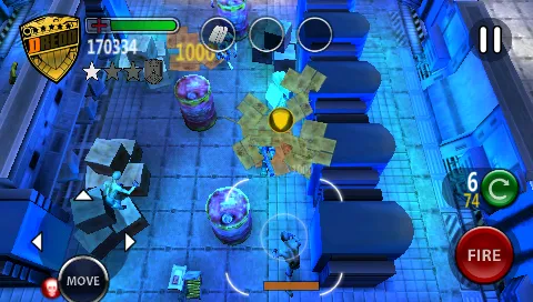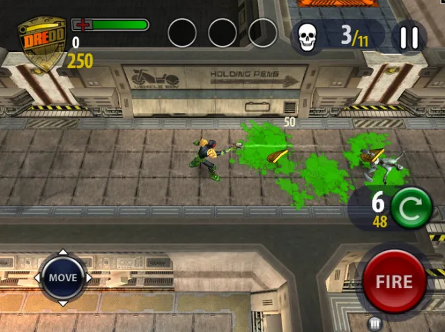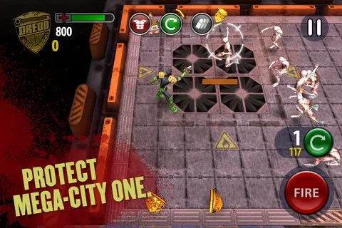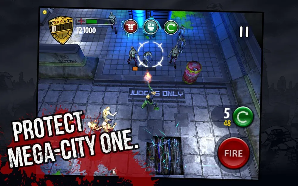 Как мы видим, популярный герой комиксов - судья Дредд, перебрался не только на киноэкраны и видеоигры, но и успел отметиться на системе Android. Игра выполнена в стиле "последнего киногероя": Дредд постоянно отпускает модные фразы, пускай у него не так оригинально как, например, у Дюка Ньюкема с его "lets rock, baby", но фразы судьи звучат весомо и бескомпромиссно, как и подобает борцу с коррупцией и преступностью. Вот некоторые из его фраз: “I am the Law”, “On my way”, “I need a medical assistance”, “I`ve got a bad feeling about this”, “Unlucky punk”, “I can do this all night”, “Eat this!”, “I am taking you down!”. Нам мгновенно дают понять, кто на этом шоу с зомби главный. Да, конечно, у такого героя есть и большая пушка. Все по канонам жанра низкобюджетных кинобоевиков 90-ых годов.