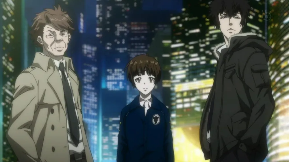 И при этом - это сериал канала noitaminA, который вообще-то для женщин предназначен и в основном трогательные мелодрамы крутит. Вокруг сериала разгорелись вполне нешуточные дискуссии, однако хочу отметить, что дискуссии эти, по большей части - на пустом месте. Отчего-то все принимают Psycho-Pass за антиутопию и/или пытаются рассмотреть там какие-то философские подтексты. Так вот, Psycho-Pass - не антиутопия. И не утопия, кстати. И не философский трактат. Это два параллельных смысловых слоя, один из которых - довольно едкая сатира на традиционное японское стремление быть правильным и общественно одобряемым и проистекающие из него неврозы (в здешнем мире отдельные граждане, боящиеся, что у них от "неправильных" мыслей вырастет криминальный коэффициент, стараются не думать вообще ни о чём и успешно доводят себя до кататонического состояния), и его можно смело пропустить мимо, а второй - неприкрытый фансервис любителям техно-нуара и киберпанка (вплоть до покадровых цитат из классики). Сверху это сдобрено интересными, хоть и типичными для жанра полицейской драмы, персонажами и крепким, хоть местами и предсказуемым, сюжетом. Не ждите откровений, и тогда сериал вам понравится. Вы любите истории про город, ночь и неон, про отсверки мигалок на мокрых от дождя стенах, про людей, делающих свою неприятную, но нужную работу, про чёрные костюмы, большие пистолеты и удостоверение в кармашке бумажника? Если да, то этого вы тут найдёте полной ложкой. Хотите большего? Ну, тогда вам не сюда. В Psycho-Pass много хорошего, но именно синдром завышенных ожиданий испортил многим моим знакомым удовольствие от его просмотра. Они ждали гениальных откровений и мозгоразрывающих сюжетных поворотов, а получили просто хороший фильм про людских мозговых тараканов в антураже Бегущего по лезвию и Особого мнения. И разочаровались. Не повторяйте их ошибок.