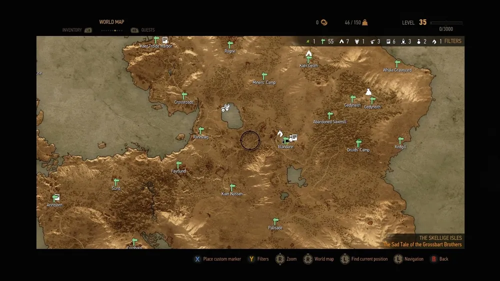 Глобальная карта. Тут и открытые поселения показаны, и Плотвичка, и место обитания монстра-босса, и все те же доски объявлений, и много чего еще.