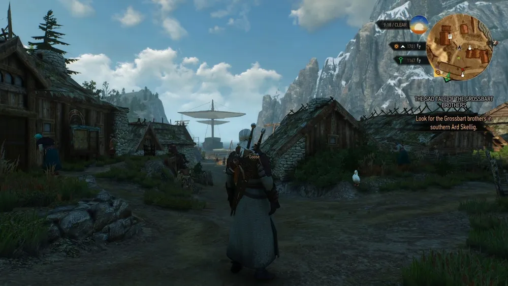 В чем ролик не позволяет сомневаться, так это в том, что мир игры не пуст и не безжизненен. Наоборот, каждый его кусочек наполнен жизнью. В лесах снуют не только монстры, но и просто животные, зайцы например. По скалистым уступам скачут горные козлы. В поселениях люди заняты своими делами, разговорами. Кто-то из них может окликнуть ведьмака, чтобы предложить ему работу, иные просто трепятся о своем, о девичьем. Домашние животные тоже не стоят столбами: свиньи валяются в грязи, куры и гуси, переваливаясь и довольно кудахтая и гогоча, дефилируют туда-сюда по деревенским улочкам. Ох уж эти гуси - предмет особой гордости старшего геймплей-дизайнера Дамьена Моньера, ответственного, кроме всего прочего, за создание экосистем. По его словам, они не просто декоративные объекты, работающие на простом скрипте, нет, они ведут себя как живые.