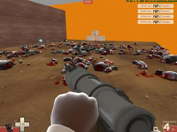 3) bot_mimic 1. Боты выполняю всё, что делаете вы. Стреляете - и они стреляют. Уходите в невидимость шпионом - вражеские шпионы вам будут подражать. Снайперский прицел? Двойной прыжок? Всегда пожалуйста. При этом роботы смотрят на вас. Это может создать определённое неудобство для ударов в спину, например. Но и это можно решить командой bot_mimic_yaw_offset 0. И вот все болванчики повернулись к вам спиной. Делайте с ними, что хотите. В пределах разумного, разумеется.) Помните, однотипные действия разных классов почти всегда повторяют друг друга. То есть ваша атака при выбранном у боте лечебной пушку активизирует лечение того, на кого направлен прицел бота. Поэтому выполнить ачиву "убить столько-то врагов, наложив убер на скаута" становится значительно легче. Вот только оружие боты менять откажутся - сменят только, если вы станете одного с ними класса и поменяете оружие. Консольная команда есть, но вот применяется она лишь на одного болвана за раз. А жаль.