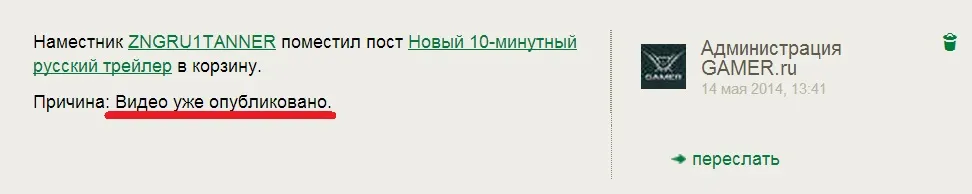 А буквально чуть-более чем через час, мой пост был отправлен наместником блога ZNGRU1TANNER в корзину, вот по какой причине: