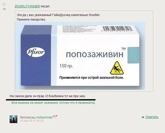 Вот один из примеров моего комментария по отношению к нему и его постам: