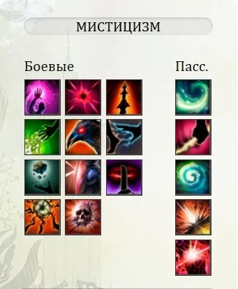 Самым большим потенциалом к ослаблению изо всех начальных специализаций обладает именно «Мистицизм». Способности этой ветки дают нам ослабление, немоту, замедление, пронзание копьем (тупо стан (stun), проще говоря), перехват управления, AoE-урон, возврат вражеского урона... НИЗВОДИТЬ И КУРОЩАТЬ!!!!! Ветка Мистицизма, взятая с самого начала, может послужить великолепной основой для желающих примерить на себя полезную в коллективных замесах роль дебафф-танка.