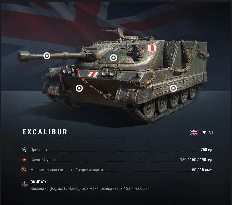 Кроме того, в качестве бонуса вместе с машиной вы получите комплекты уникального камуфляжа «Меч в камне» для Excalibur. А если выполните все задачи с отличием, откроется возможность их покупки для всей техники британской ветки.