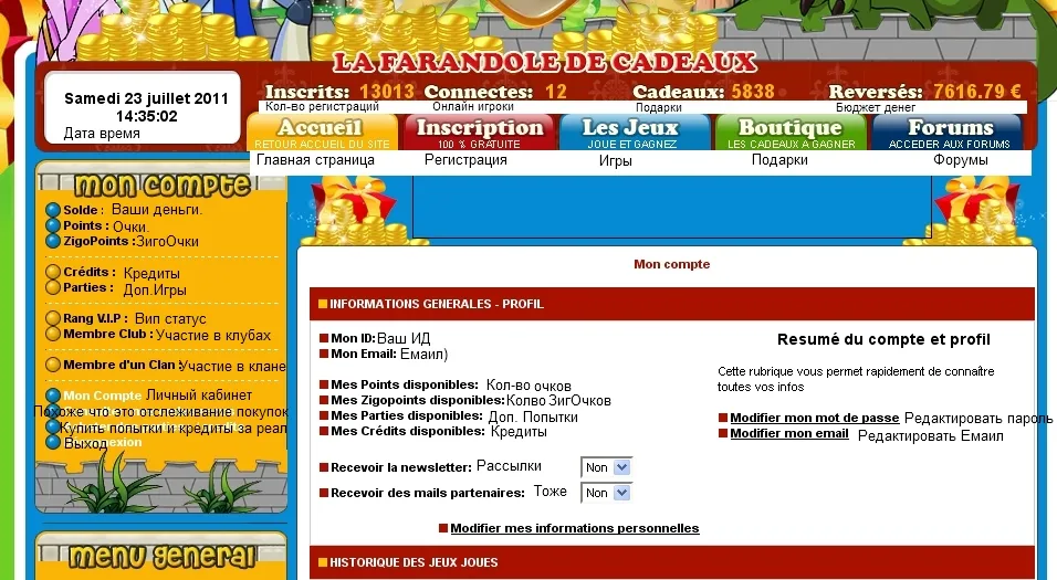 Для того чтобы начать играть перейдем на Страницу игр (Les Jeux)..