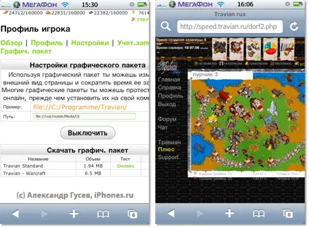 С появлением iPhone многие пробовали заходить в Травиан через браузер Safari, но это выливалось в дорогой трафик, так как многие элементы игры берутся с сервера. Геймеры приуныли: иметь такой аппарат и не мочь развивать свои деревни и города! Но Александр (DeFaktoR) Гусев нашел оригинальный способ экономии трафика.