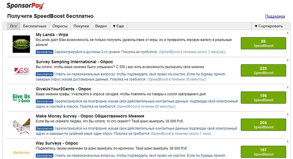 Способ найден относительно недавно. Оригинал способа здесь, но если кому-то в лом чиать много букв, вкратце поясню: можно получать бусты с помощью системы SponsorPay