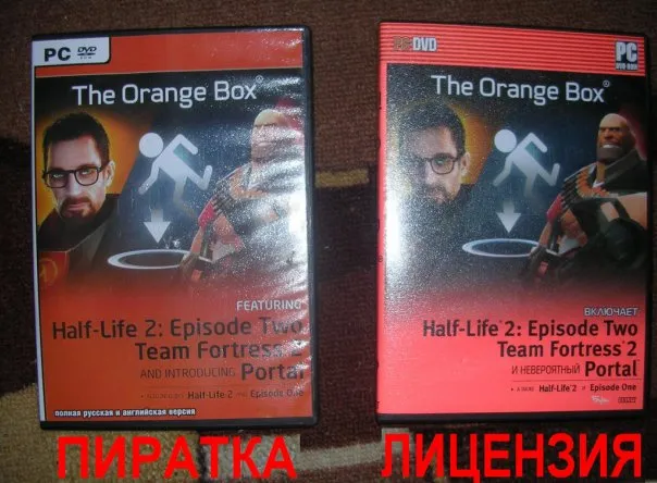 в The Orange Box два диска, в пиратском - 1 (хотя пиратки разные бывают)