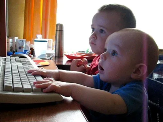 К тому же, когда дите начнет самостоятельно передвигаться, можно обучит его нажимать кнопочку Reset, и выдергивать «нужные» провода как раз в то время, когда у папочки самая ответственная битва с самым толстым боссом. Вообще надо любыми путями заставить мужчину чувствовать себя виноватым, при каждом его влюбленном взгляде на монитор, неловком движении мышки, дитятко будет Вам в этом наилучшим помощником.