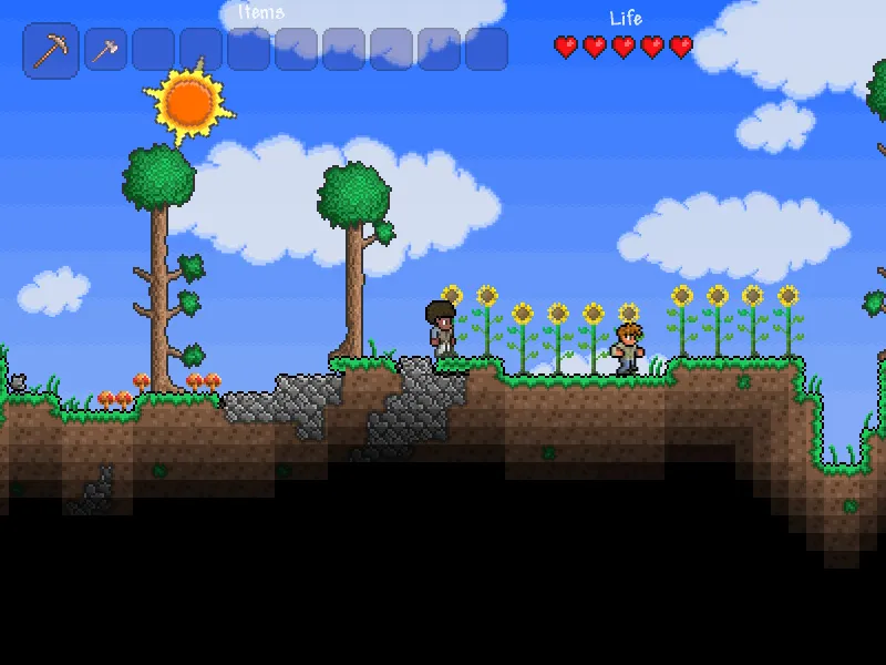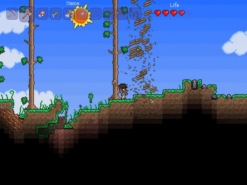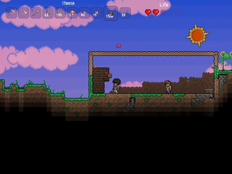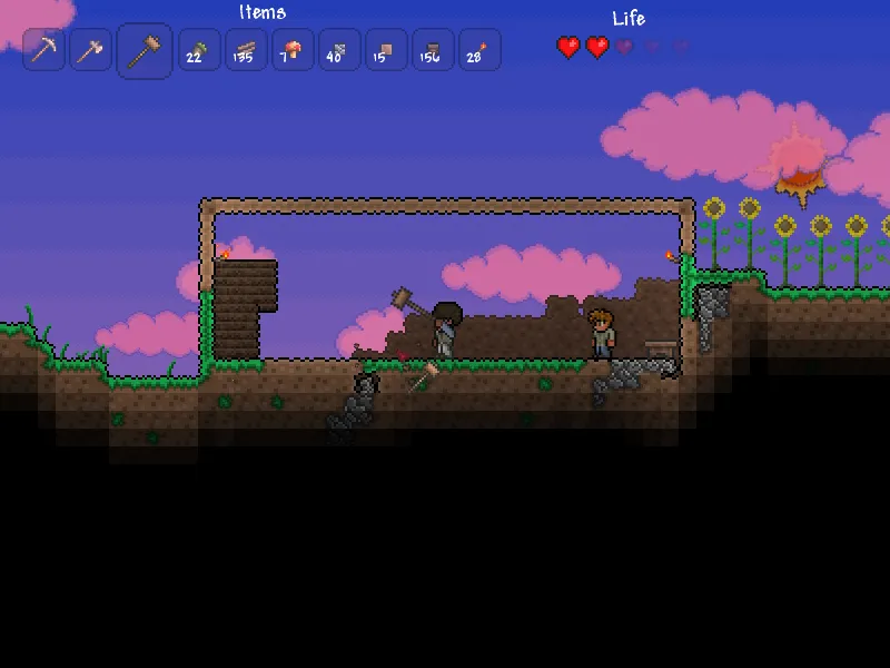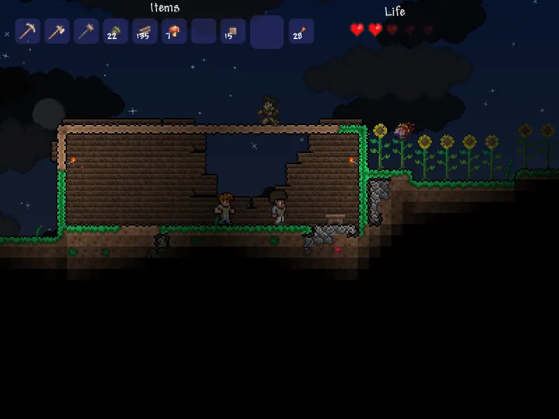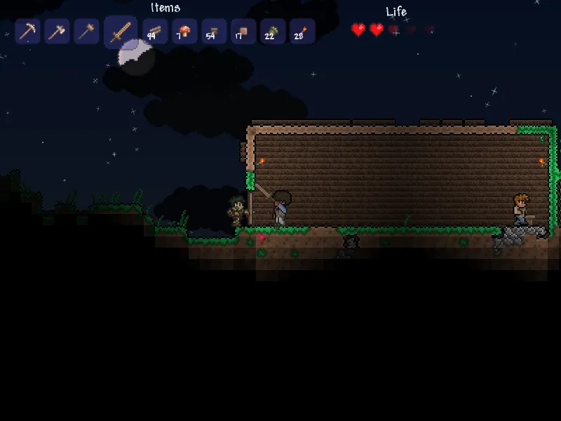 Как и в Minecraft, начиная новую игру в свежезозданном мире, в Terraria лучше постараться построить себе убежище еще в светлое время суток. Когда взойдет Луна, вам будет не до рубки деревьев! =]