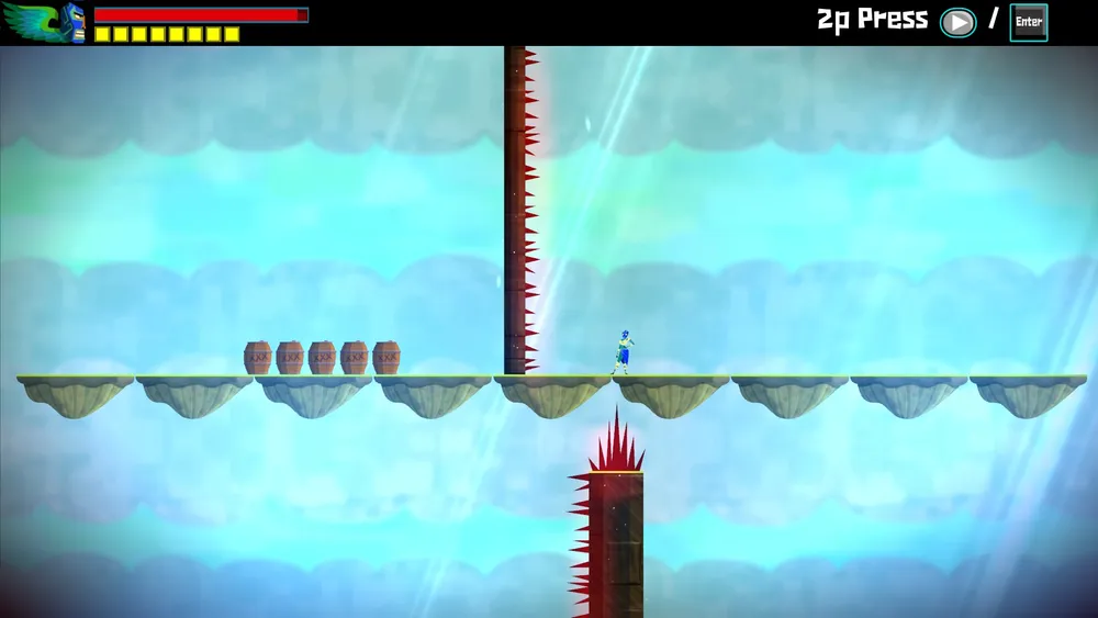 Поздравляю, вы достигли своеобразного чекпойнта: теперь, если упадете, то не ниже это платформы. И не ломайте бочки, что здесь стоят – они могут восстановить вам жизни в нужный момент.
