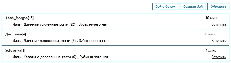 Можно согласиться на поданную заявку. можно создать свою, а можно для тренировки биться с ботом.