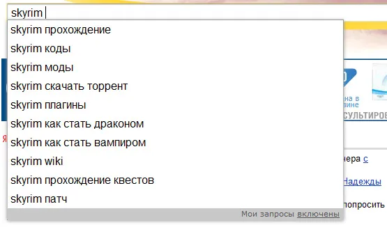 И, важно. Саггесты учитываются только в той форме, в которой вы вводите запрос. То есть, если вы ввели skyrim - вам покажутся популярные запросы, начинающиеся с этого слова.
