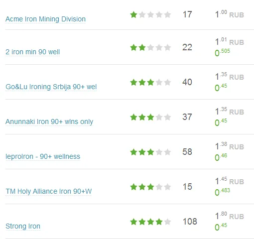 Из картинки ясно, что самое дешевое железо из представленных имеет цену 0.45 за q1. Пересчет цены на q1 производится, потому что если вы в оружейку q1 покупаете 10 единиц железа q4, то вам в хранилище добавится 40 единиц железа q1.