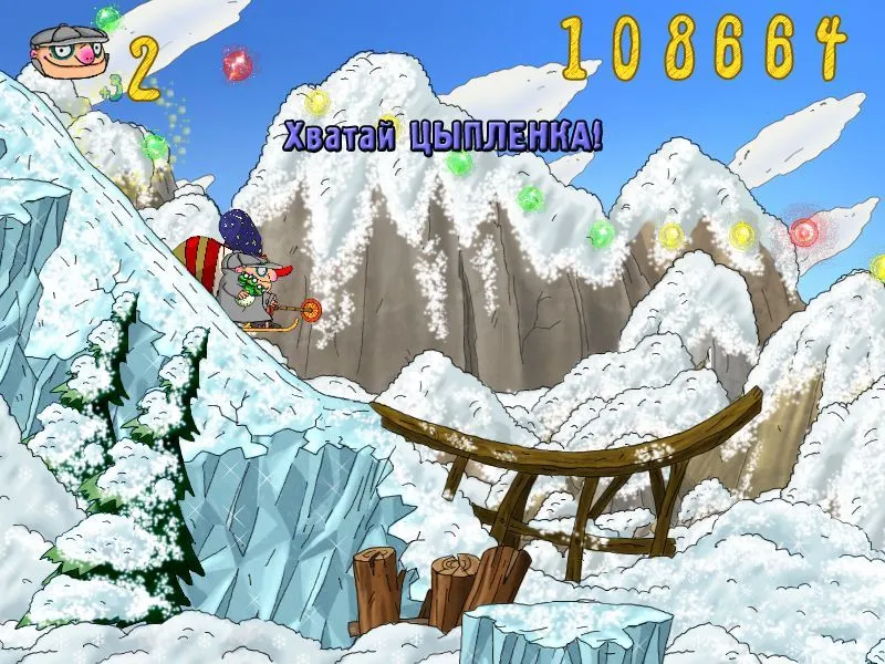 Начнём с управления. Оно элементарно. Вам нужно будет освоить всего пять клавиш – четыре стрелки и пробел. Стрелка вверх – прыжок. Либо подъём летательного аппарата (это касается и парашюта в «восходящем потоке». Стрелки вправо-влево это движение вперёд-назад. Можно, впрочем, комбинировать, вперёд+вверх, назад+вверх, тогда колобки делают забавные кульбиты в прыжках. Стрелка вниз помогает укрыться в вагонетке и регулирует высоту во время полёта на различных летательных средствах. Ну и самое главное – пробел. Это атака врага подручными средствами: выстрел из пистолета, бросок панамы, удар веслом и т. д.