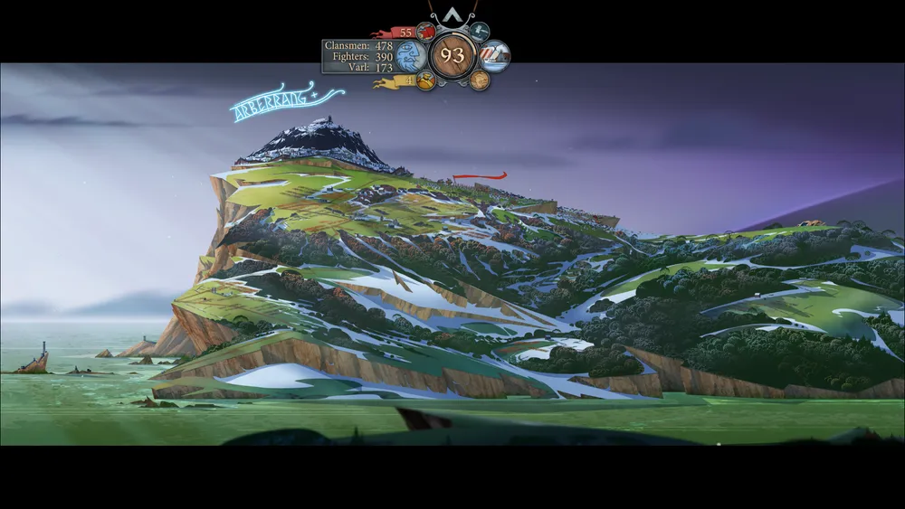 The Banner Saga игра о том, как важно ощущать ответственность за чужие жизни. Разработчики попытались заставить нас прочувствовать роль лидера на своей шкуре, но вышло ли у них? Скорее нет, чем да. С одной стороны, взаимоотношения между ключевыми персонажами в караване раскрыты довольно глубоко. Герои ссорятся, вместе празднуют победы, признаются в любви, подшучивают друг над другом. За всё время игры вы привыкаете к ним и испытываете неподдельные чувства к каждому. Но до финала могут дойти не все, и только в ваших силах уберечь как можно больше друзей. Совсем другое дело, что сюжетных поворотов, в которых мы можем потерять кого-то, катастрофически мало. Всего несколько раз за игру. И вся пресловутая нелинейность куда-то вмиг исчезает. Создатели проложили определенные рельсы, с которых нам не свернуть. Есть незначительные развилки, но в конечном итоге всё будет так, как задумали они. И даже перенос ваших решений из первой части не сильно изменит историю. Просто поменяются некоторые диалоги. Что касается утраты общей численности путешественников, то тут тоже не всё так просто. В ходе приключения их могут убить, или они сами уйдут, недовольные вашим командованием, но… Члены каравана в игре всего лишь цифры в верхней части экрана. К ним не привязываешься, о них не беспокоишься, их даже не видишь. Авторы не дают вообще никакой эмоциональной привязки к ним. Поэтому со временем всё чувство ответственности постепенно сходит на нет. И даже голодные смерти перестают заботить. Главные герои всё равно будут жить. Тот редкий случай, когда хочется попросить у разработчиков более суровое наказание за свои провинности.