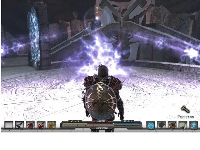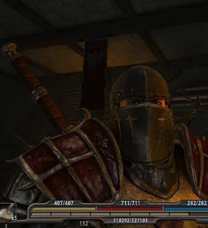 Что касается оружия дальнего боя. При стрельбе из лука, (наверное, пока не прокачал достаточный уровень), прицел постоянно плавает, и издали сложно всадить стрелу в цель (особенно в голову со спичечную головку, как советуют нам разработчики). К тому же сам прицел серого цвета, в большинстве случаев, просто сливается с фоном, так что напрягать зрение приходится изрядно (вспомнить хотя бы Обливион, где перекрестье прицела было жёлтым, видным, особенно в темноте пещер). Я не прокачивал стрельбу, т.к. играл за тяжеловооружённого рыцаря с двуручником, коим сделал в ходе игры своего ГГ, а ему нужны таланты отличные от лучника. При стрельбе из арбалета прицел не вихляется, заряжается он быстрее, чем натягивается тетива у неумехи, а посему ему и было отдано предпочтение (только вот болты встречались в сундучках намного реже, чем стрелы). Выбор оружия в игре богатый, к тому же возможно создавать собственное путём изучения свитков с рецептами – и это без утомительного