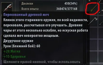 и подручных големов-скелетов-магов выводит, и из под земли вырастают каменные корни, которые Пастушка щекочут подмышками, да и сама вызывает землетрясение (наверное, лучше всего при этом подпрыгнуть и зависнуть, потому как в любом случае мой ГГ валился на землю и терял немало жизни). Пришлось взять шашку помощнее – Перекованный Древний меч (даёт +15 к здоровью и магию повышает, но последнее нам по-боку, мы гордые рыцари фокусами не занимаемся). Снимал он, двуручный, пунктов 60 за раз и дело пошло веселее.