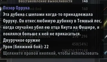 После, по дороге к ведьме через Тёмный лес (задание от Диего, которое, собсна, спасает ГГ от неминучей смерти на родном острове), в одной пещере нашёл дубинку орка Оррука (Позор Оррука – двуручник)