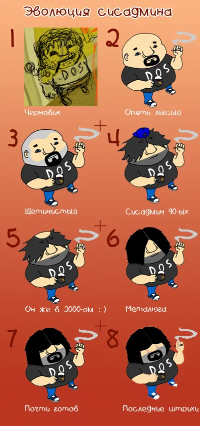 Я впал в уныние. Но тут подоспел один мой знакомый, поржал над картинками. Я рассказал ему про сюжет, и мы стали его обдумывать вдвоём. В итоге, через пару месяцев, первоначальная небольшая задумка, развернулась в эпопею.