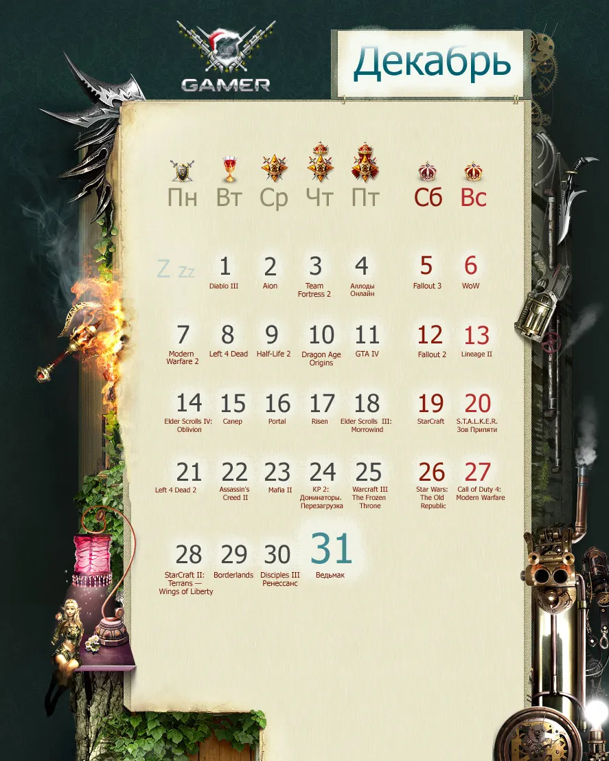 Декабрь подходит к концу, на конце Новый Год, а у меня календарик — вдруг, кто чего забыл? )