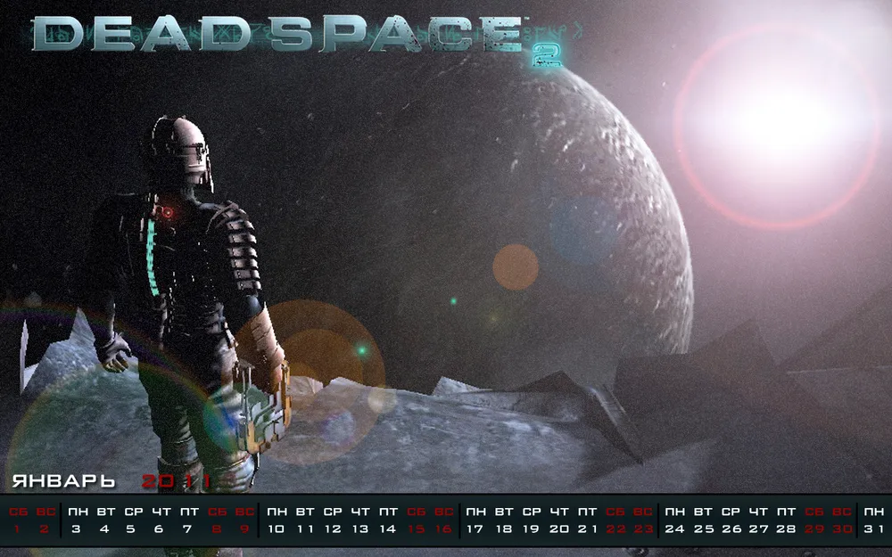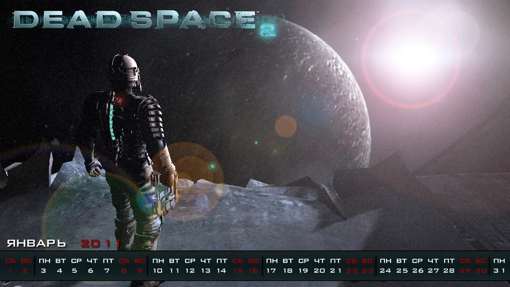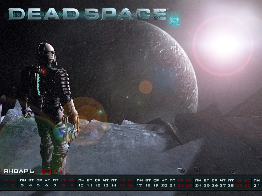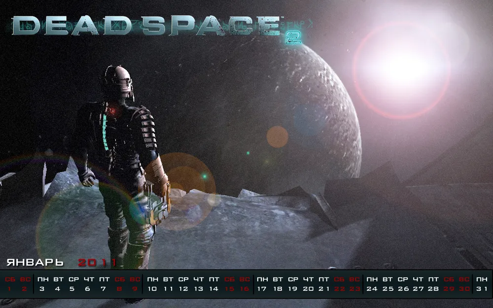 Решил сделать календарь на январь под выходящую как раз в тоже время игру Dead Space 2. Без лишних слово просто представлю их вам: