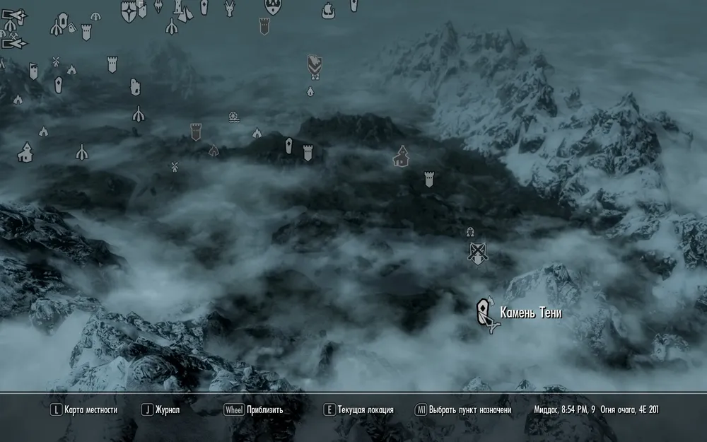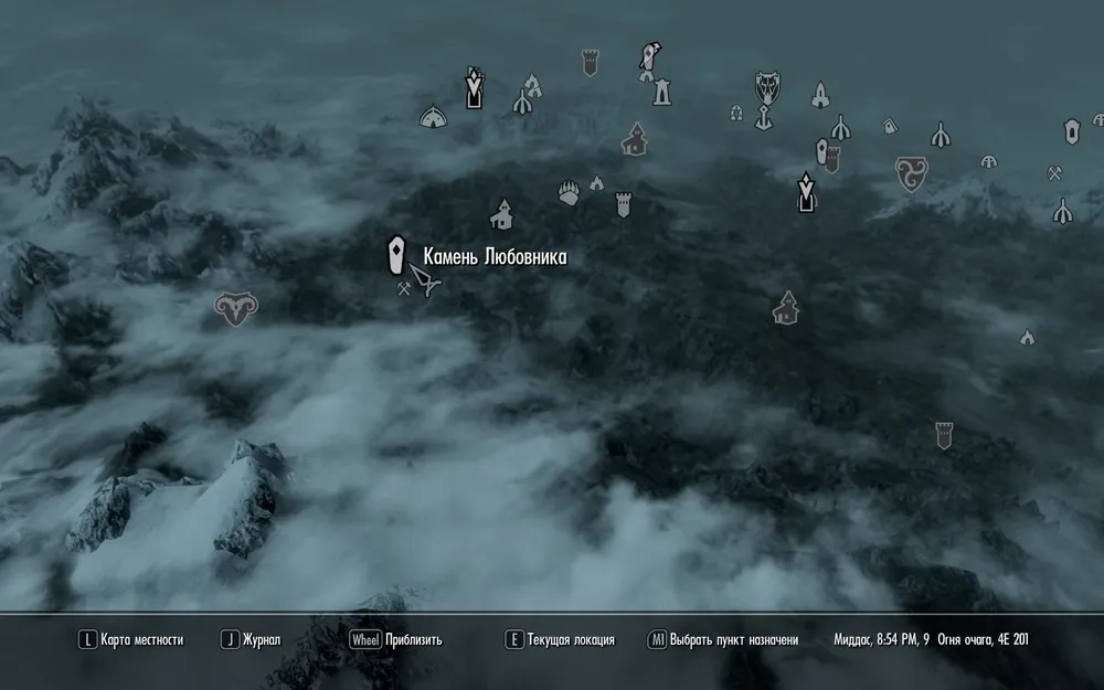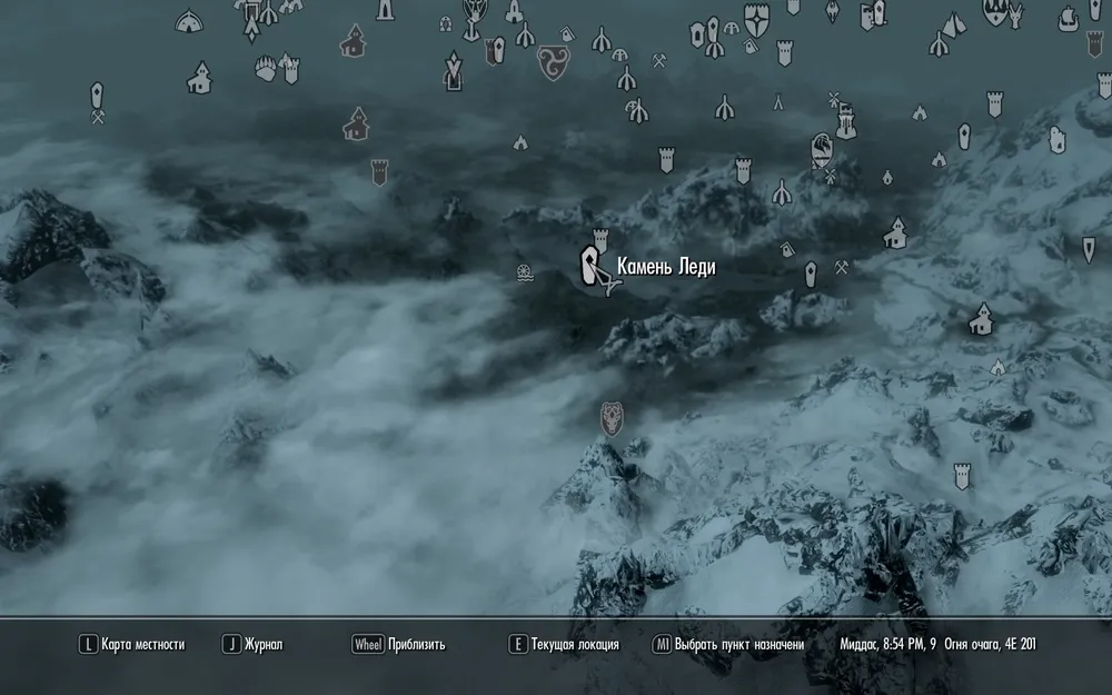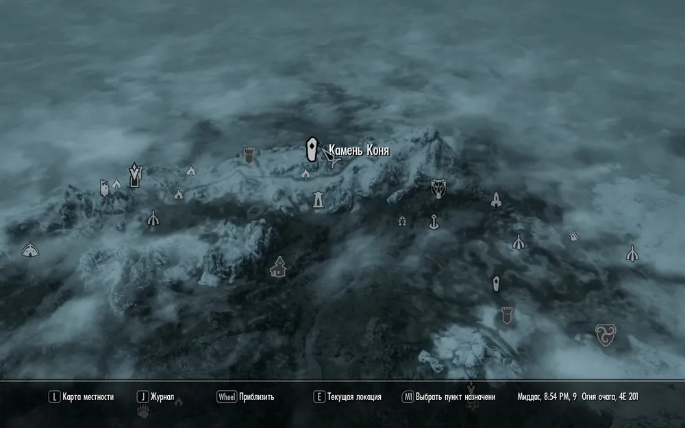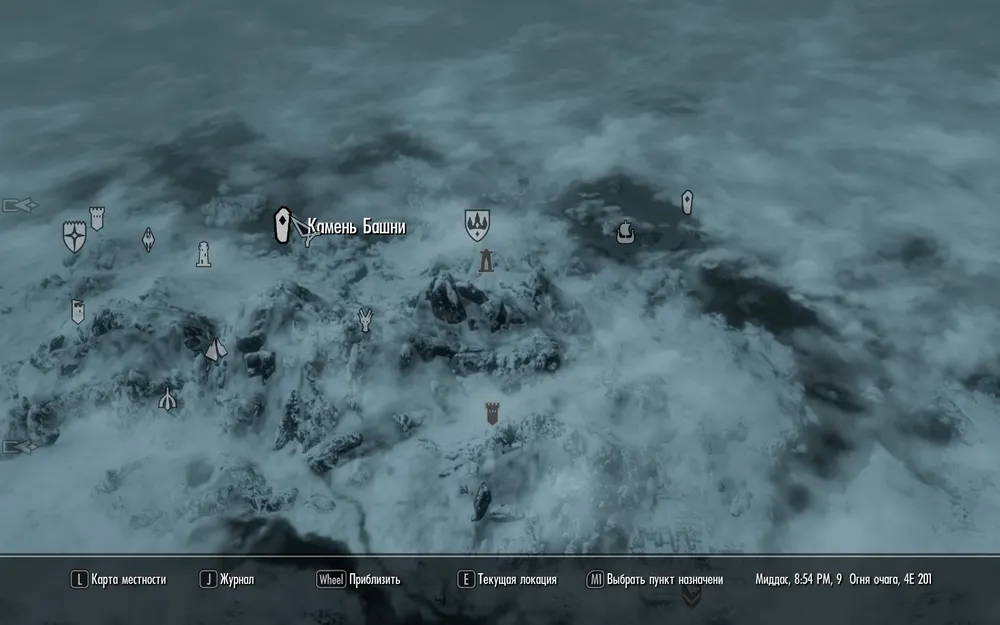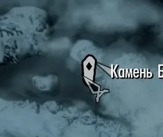 Местополжение. Почти ровно восточнее Винтерхолда и сильно севернее Виндхельма можно наткнуться на место крушения «Гордости Тель Воса». На восток-северо-восток от него будет айсберг, на котором стоит камень (там целый кромлех, видно с моря). От места крушения знак камня уже должен отображаться на компасе.
